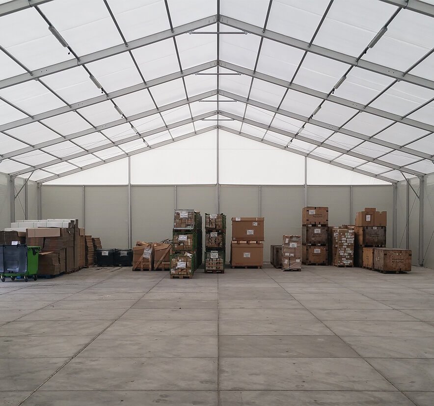 ¿Cómo podemos apoyar óptimamente a tu empresa? ¿Necesitas espacio de almacenamiento para maquinaria pesada o productos sensibles a la temperatura? ¿Quizás estás considerando un showroom temporal en tu terreno donde tus clientes puedan echar un vistazo tranquilamente, o necesitas un espacio para una tienda pop-up o una cubierta para piscina? En Donselaar Structures ofrecemos la carpa que se ajusta perfectamente a tus necesidades. Nuestras carpas totalmente aisladas son ideales para el almacenamiento sensible a la temperatura y como ubicación de tienda temporal. Con aislamiento de alta calidad tanto en el techo como en las paredes y calefacción opcional, garantizamos un ambiente confortable, incluso durante los meses más fríos.
